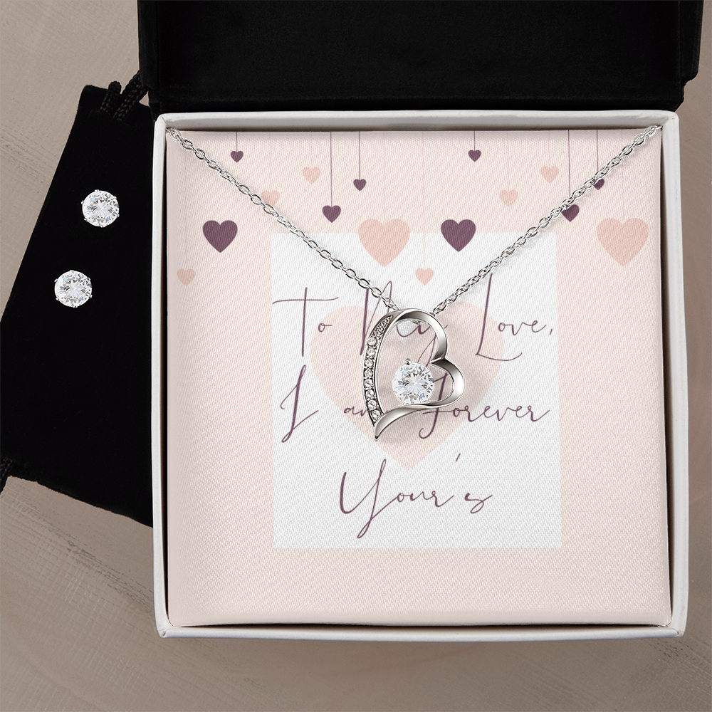 Give your loved one a gift that will make their heart swell! The Forever Love Necklace and Cubic Zirconia Earring Set is sure to do the trick.  This necklace and earring pairing provides dazzling sparkle when worn together or separately, and is perfect for any occasion! Do not miss out on this special offering!